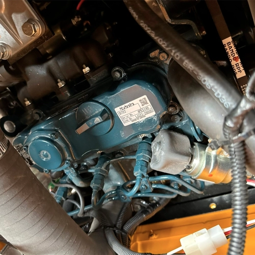 El motor diésel Kubota D722 de 3 cilindros y 14 HP, perfectamente adaptado, está refrigerado por agua. El agua circula por el motor, absorbiendo y disipando el calor generado durante el funcionamiento. Esto reduce el ruido y las vibraciones. El enfriador de aceite hidráulico garantiza una refrigeración eficiente durante las tareas más intensas y exigentes o en condiciones ambientales adversas. El enfriador disipa el calor generado por los componentes hidráulicos.