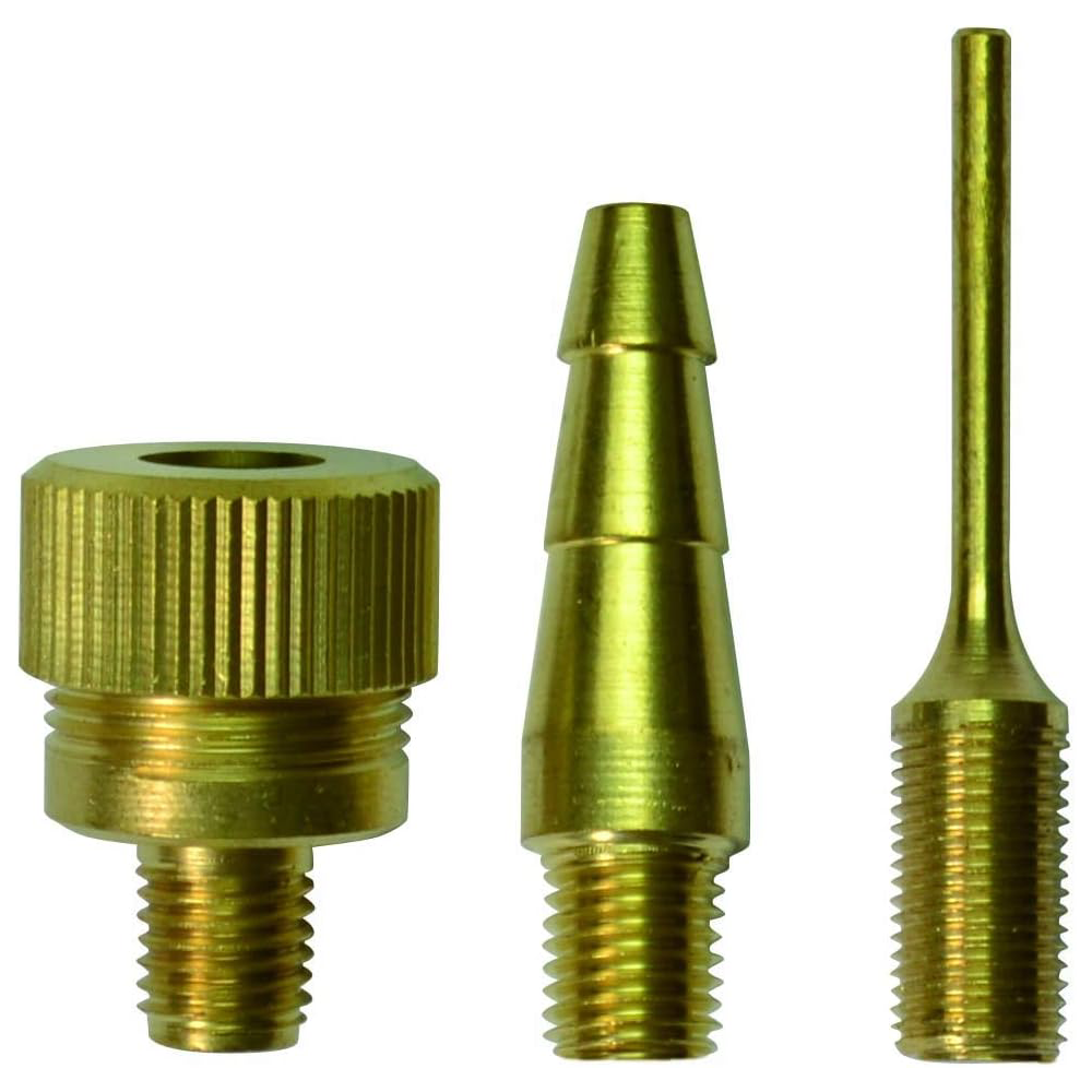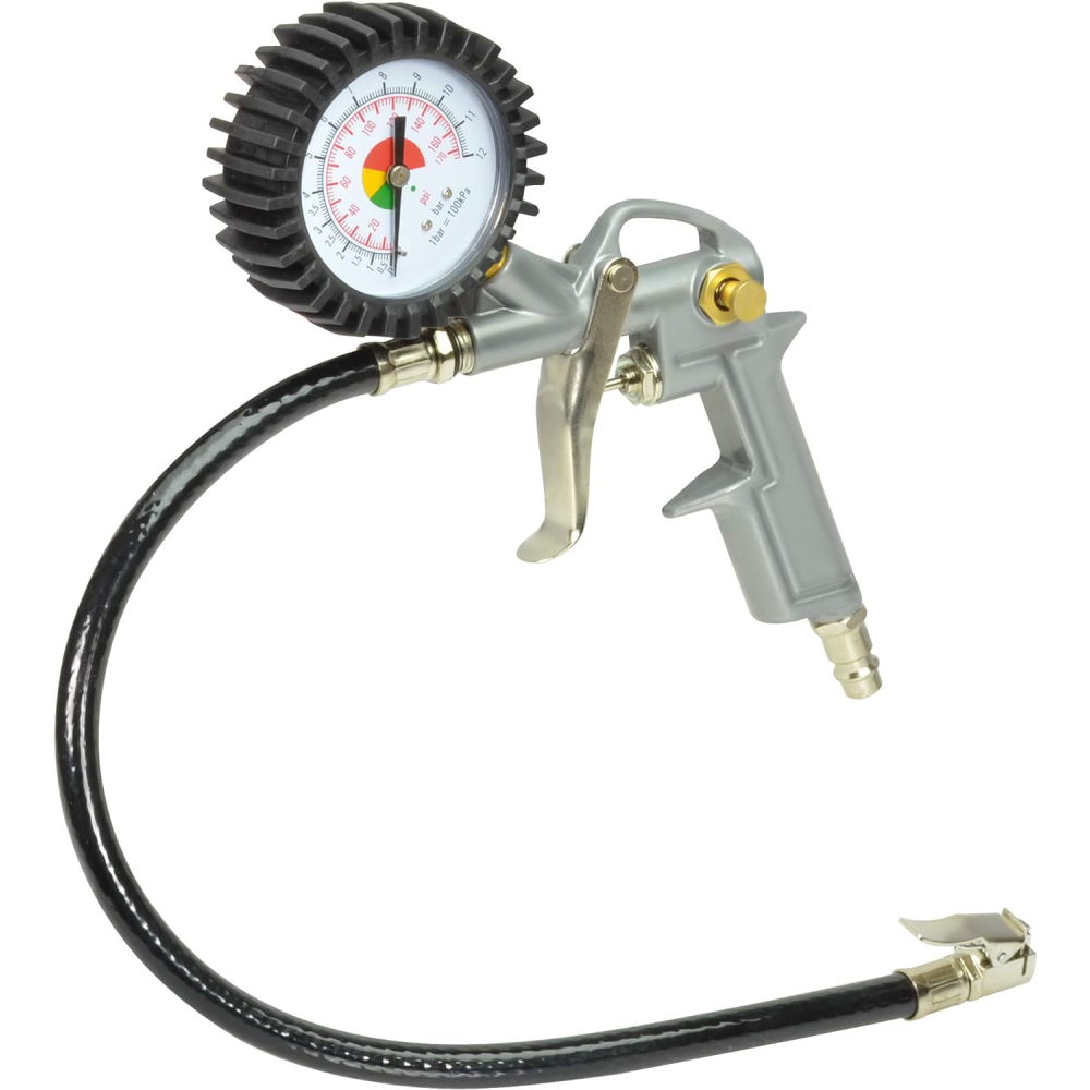 El kit también incluye un inflador de neumáticos, con manómetro y tres boquillas de inflado diferentes, lo que lo hace versátil para una variedad de neumáticos.