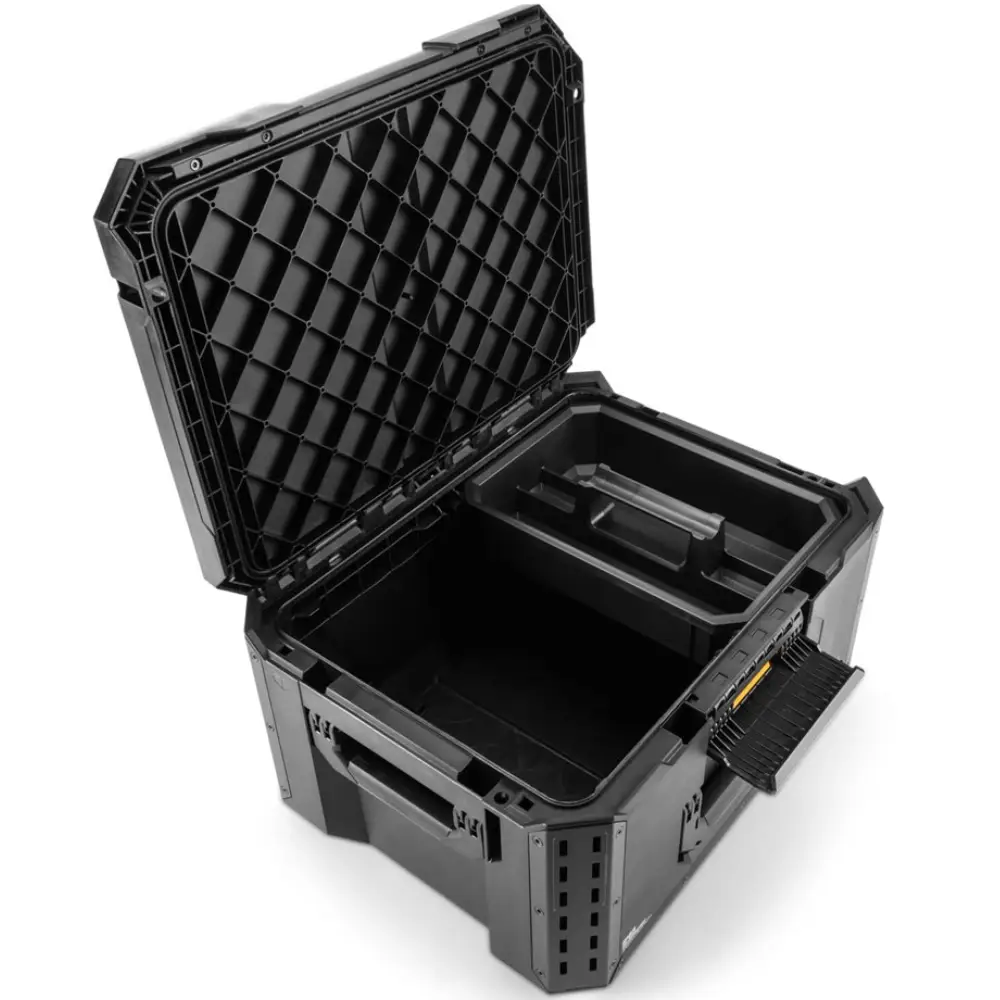 Composto por uma caixa de ferramentas que é a base móvel deste conjunto, por uma segunda caixa de grande capacidade e pela primeira caixa que foi concebida para oferecer desempenho e versatilidade.