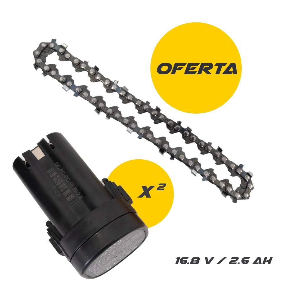 O Podador a Bateria by FELCO ® vem com um carregador e duas baterias de 2Ah que permitem até 4 horas de trabalho contínuo ou cerca de 200 cortes, garantindo eficiência e autonomia para completar as tarefas sem interrupções.