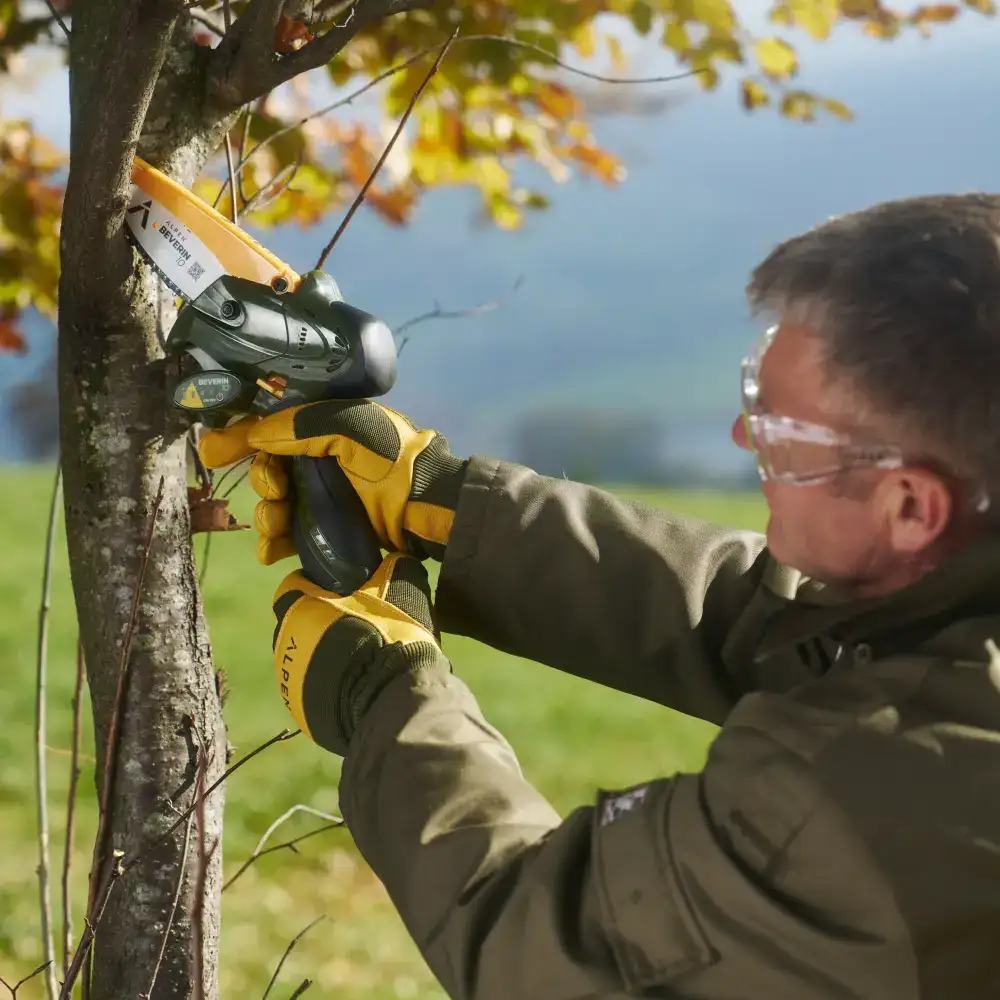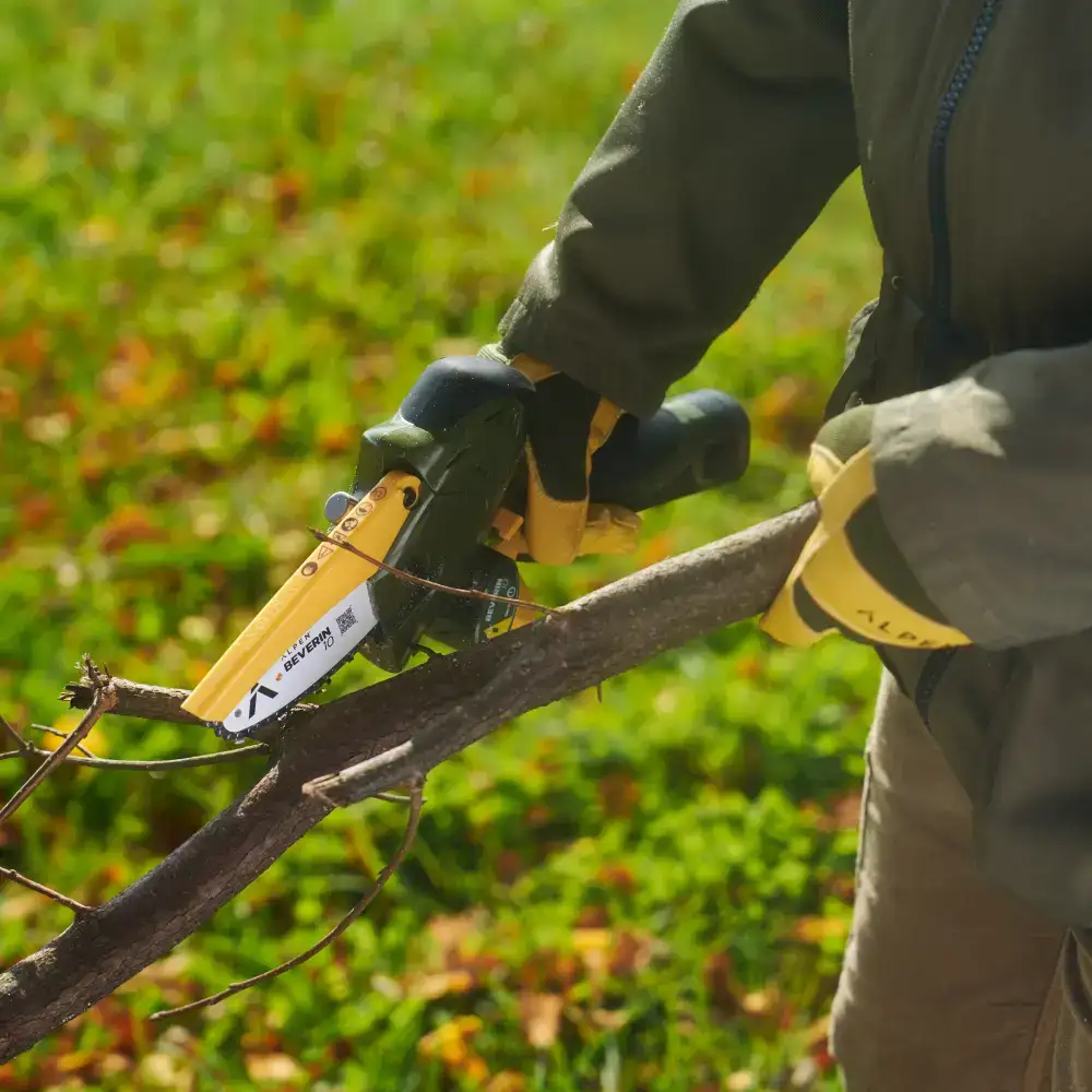 O Podador a Bateria by FELCO ® é uma ferramenta versátil e eficaz, ideal para a poda de ramos em pomares, parques e vinhas. Com um comprimento de barra de 10 cm, é perfeita para cortes precisos em ramos de pequeno a médio porte.