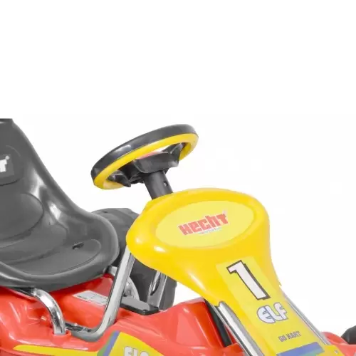 The surprisingly beautiful GoKart with Pedals Hecht 59788 can be driven with the pedals and stopped safely with the coaster brake. The oscillating axle ensures perfect traction. This children's vehicle consists of a solid frame for reliable stability and robust wheels to prevent punctures. The large seat offers good support and is controlled by the steering wheel. The closed chain box  ensures that your children will not get hurt.