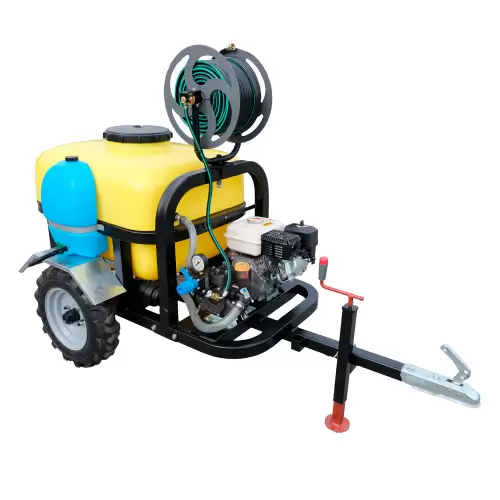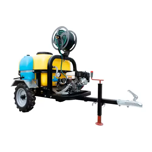 Pulverizador Rebocável Donker’s 200L com motor OHV 4T e bomba Bertollini com lubrificação para utilização com qualquer veículo de tração, na desinfecção e controle eficaz de pragas em culturas agrícolas de média / grande dimensão. O depósito em PVC tem capacidade para 200L.