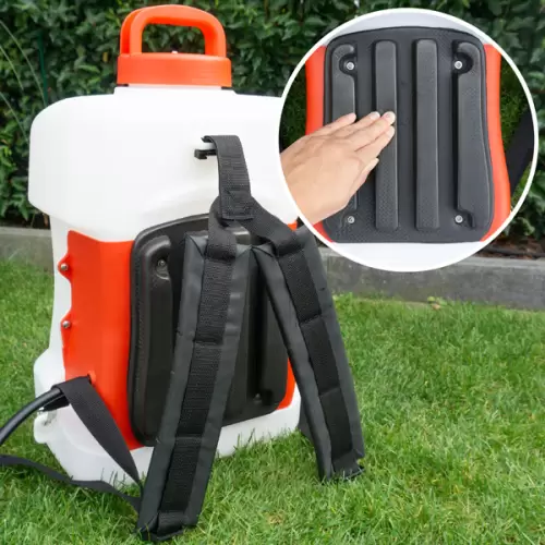 O pulverizador  tem uma capacidade de 15 litros e uma pressão máxima de 2.5 bar, o tubo de pulverização tem 150cm de comprimento, e vara de pulverização tem 50cm.