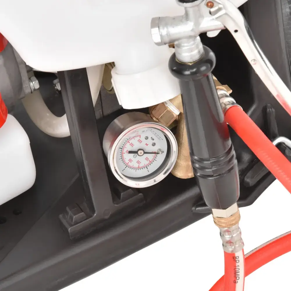 O Pulverizador de Costas HECHT 433, está equipado com uma Bomba Comutável que assegura a pressão ideal e a otimização da temperatura de funcionamento do motor.