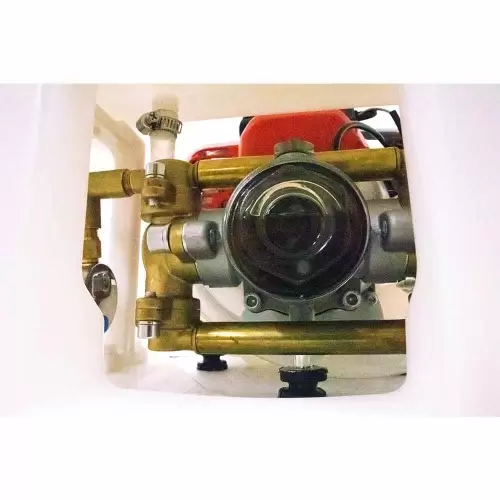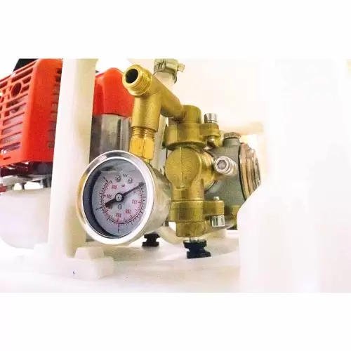 Equipada de um depósito até 15litros, poderá operar a calda na saída com pressões de 0 até 25Bar, regulável através de um válvula de pressão de fácil acesso, e um caudal de 7Lt/min, também regulável.