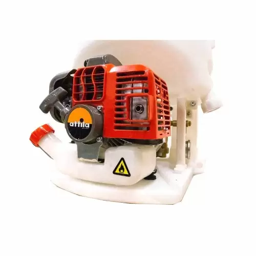 Motor Potente de 2 tempos O Pulverizador Profissional da ATTILA possui um motor de 2tempos a gasolina de 25.4cc. Totalmente protegido e apoiado por um chassi reforçado com amortecedores, assim o motor durará por muito tempo, e máquina torna-se confortável.