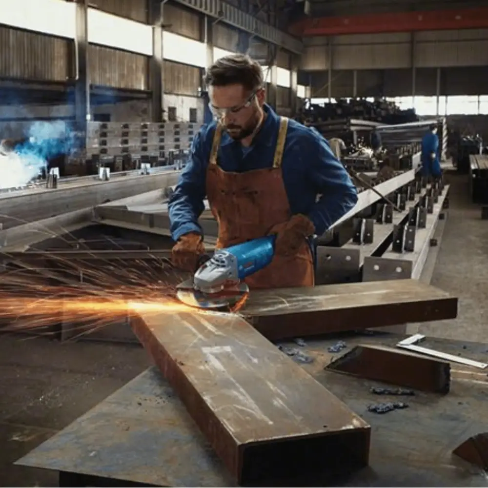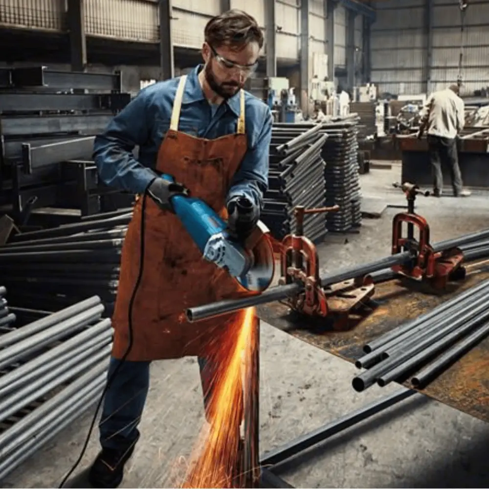 A rebarbadora de duas mãos é ideal para tarefas de corte em materiais como metal e pedra.