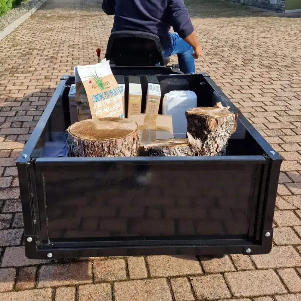 Este reboque combina funcionalidade e praticidade, tornando-se um acessório indispensável para tarefas de jardinagem e manutenção de terrenos.