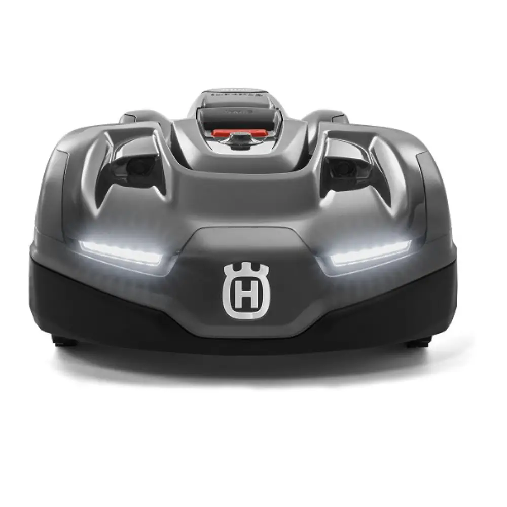 Inclui funcionalidades avançadas como GPS assistido, conectividade Bluetooth e móvel (via app Automower® Connect), além de integração com assistentes virtuais como Alexa e Google Assistant.