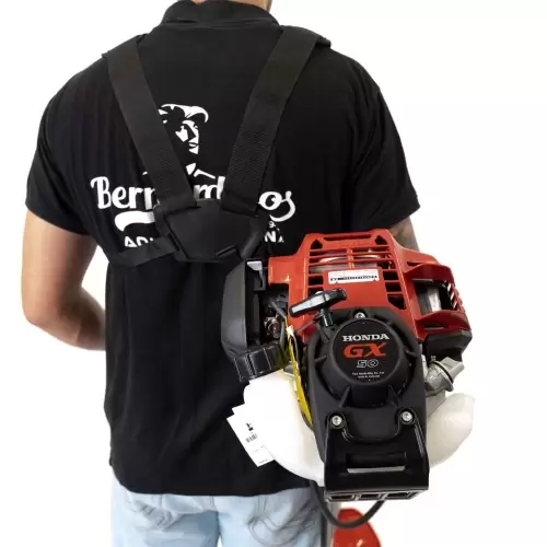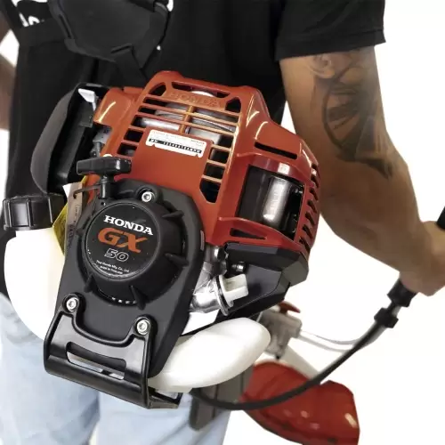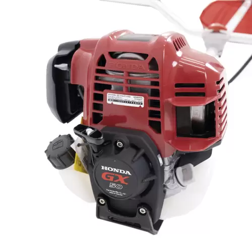 Roçadora a gasolina Honda GX50 com potente e compacto motor Honda 4T de 2 HP para utilizações profissionais e duradouras. Ideal para desbastar áreas verdes e campestres, de relva espessa e ervas daninhas, após o corte principal.