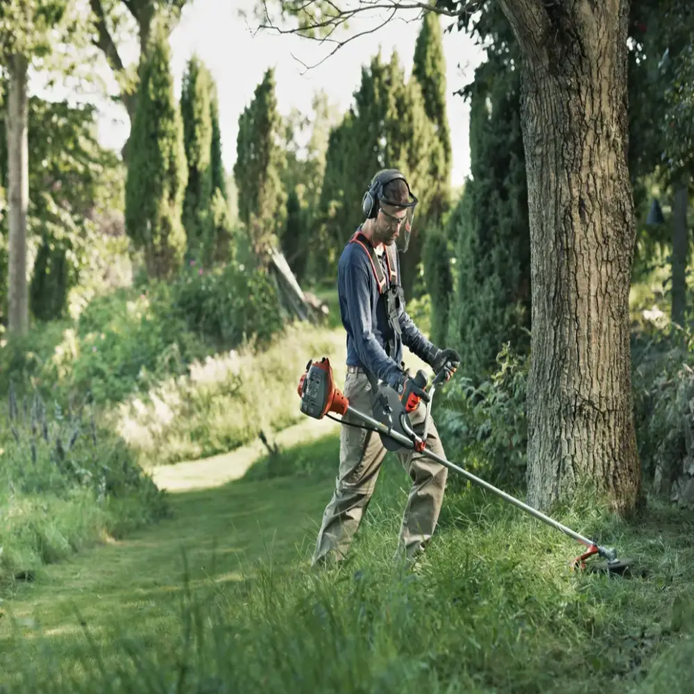 O guiador oferece um controlo firme e ergonómico, ideal para a postura correta do operador . O arnês incluído distribui o peso da Roçadora Husqvarna 122R para reduzir a fadiga durante longos períodos de utilização.