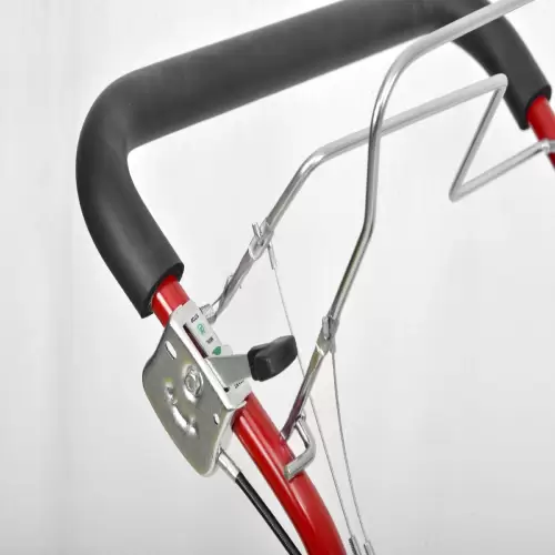 A velocidade de operação do triturador, pode ser definida em 2 etapas para aproximadamente 2,3 ou 3 km / h . O guiador com alça de empurrar macia é ajustável em altura de 4 níveis e adaptável ao tamanho do usuário e permanece acessível e flexível.