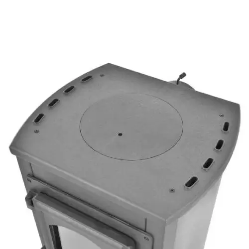 Salamandra de aço HECHT VERVIS com chaminé traseiraPorta de ferro fundido com vidro resistente ao calor e caixa de aço robusta, a fornalha é revestida com revestimento cerâmico refratário, o que aumenta a vida útil do fogão e, ao mesmo tempo, acumula calor. Grelha de ferro fundido.