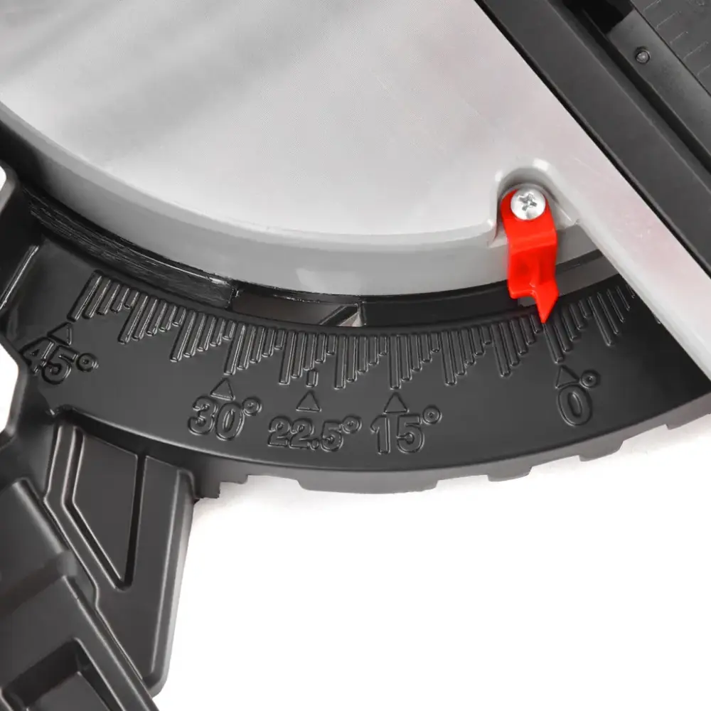 Possui um ângulo de inclinação ajustável de 45° para a esquerda e para a direita, bem como um corte em bisel de 0° a 45° à esquerda, permitindo uma grande variedade de cortes angulares.