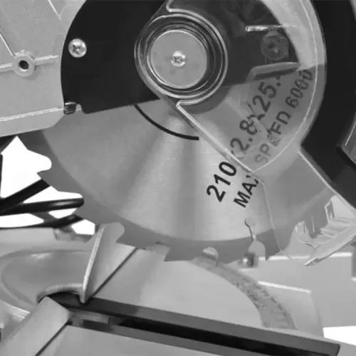 A serra de esquadria HECHT813 está equipada com uma lâmina de serra de precisão de alta qualidade em metal duro com um diâmetro de 210 mm , que garante um corte limpo e preciso . A máquina é versátil e ideal para cortar laminados, parquet, tábuas de terraço e piso, bem como componentes de móveis ou dutos de cabos!