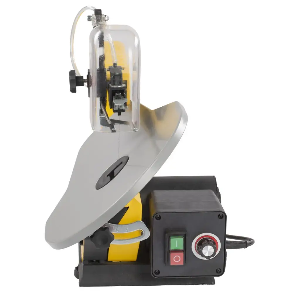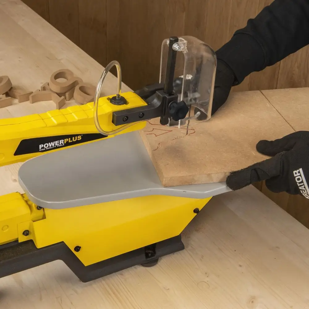 Velocidade ajustável: Utilize o botão rotativo junto ao interruptor para regular a velocidade de corte da lâmina, garantindo a velocidade adequada para madeira de qualquer espessura.