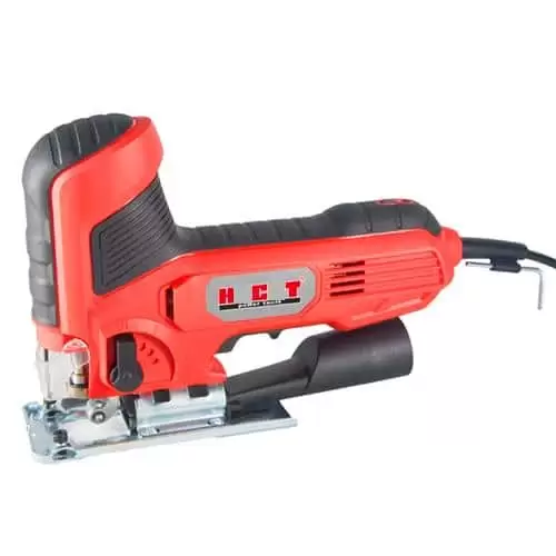 A Serra Tico-Tico HCT 1546 com motor de  600 W  pode ser utilizado para cortar madeira de até  80 mm de espessura e metal de até  6 mm . Uma guia de metal colocada sob a serra, garante um corte sólido e seguro .