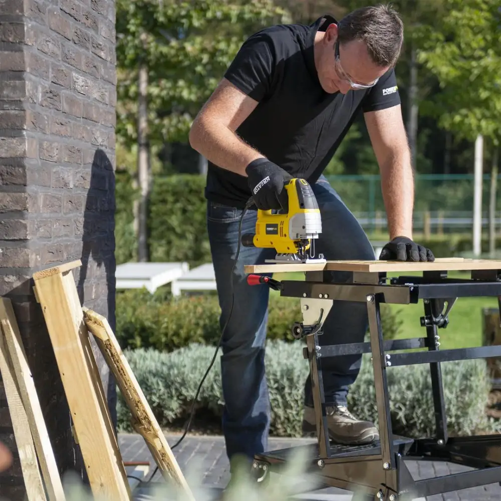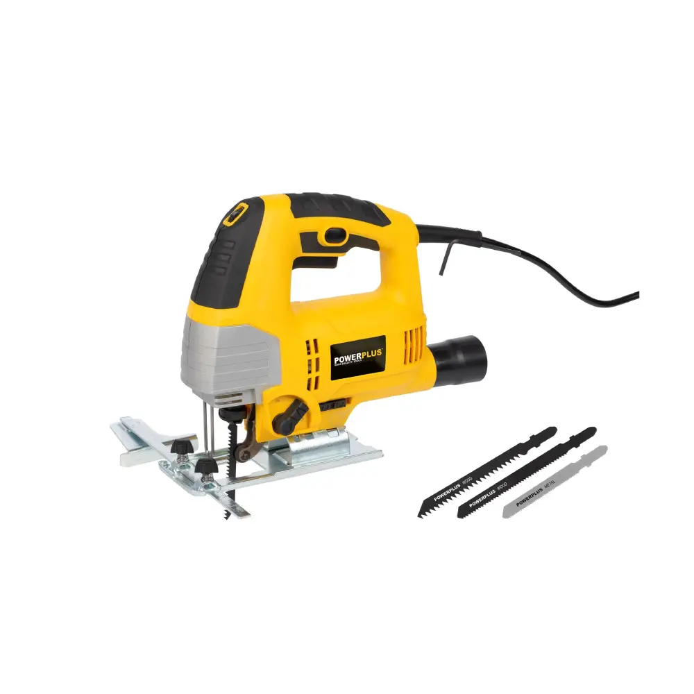 Esta Serra Tico-Tico Powerplus pode ser usada para cortar formas irregulares, mas também para criar cortes retos ou em ângulo, pois é equipada com um trilho-guia lateral resistente e uma sapata ajustável.