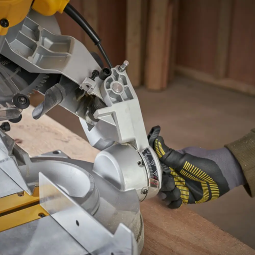 The miter saw is equipped with a powerful 1650 W motor and 4800 rpm, offering fast, clean, and efficient cuts.