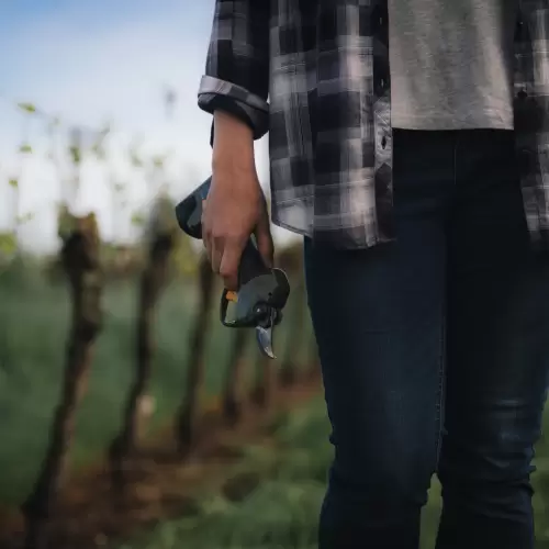 É fácil de trabalhar com a Tesoura de Poda by Felco graças ao baixo peso e coldre ergonômico, onde pode levar consigo uma bateria extra.