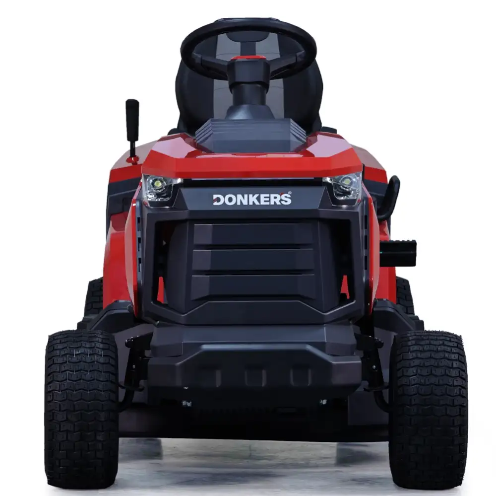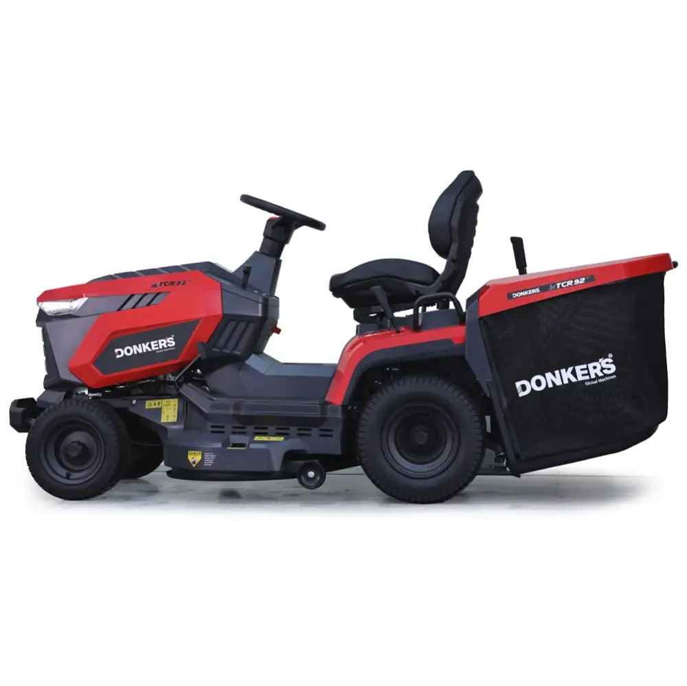O trator corta relva Donker´s TCR92MC está equipado com banco premium ergonómico, rodas dianteiras de 15" e traseiras de 18", engate elétrico das lâminas de corte, painel digital e faróis LED-Advanced, suporte para copos, rodas anti-escalpo e conector para lavagem da unidade de corte.