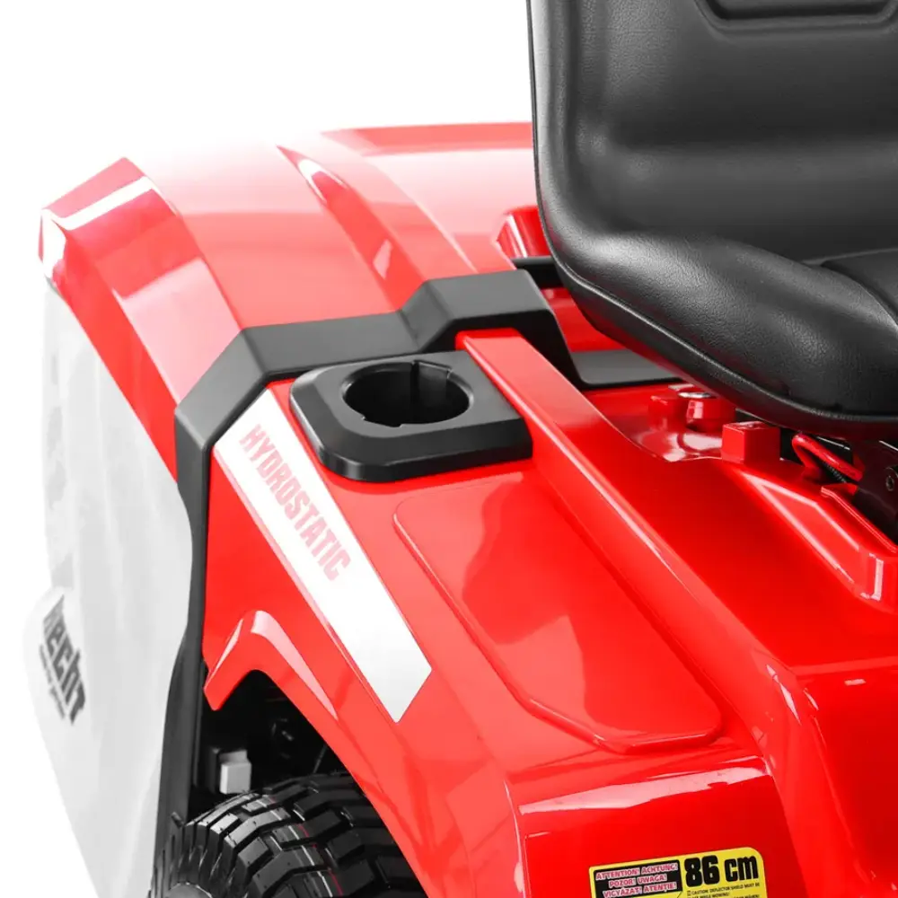 A sua largura de trabalho de 86 cm e a sua altura de corte ajustável, entre os 30-90 mm, fazem deste trator corta relvas perfeito para a manutenção de jardins e áreas amplas.