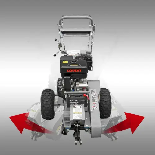 Cuenta con un potente motor de gasolina Loncin de 15 CV y una construcción robusta. Es ideal para las tareas más exigentes, tanto para uso doméstico como profesional. Gracias a su diseño compacto, de tan solo 790 mm de ancho, esta máquina pasa por prácticamente cualquier puerta, lo que la hace extremadamente maniobrable. El cabezal de trituración está equipado con ocho cuchillas de carburo de tungsteno extraendurecidas, especialmente duraderas y reemplazables individualmente. La unión suave entre la base y el cabezal de trituración permite mover la máquina cómodamente en amplios arcos. Esto garantiza una eliminación eficiente de los tocones, incluso con un uso intensivo y continuo. La trituradora de tocones Jansen BSF-15PRO de 15 HP pesa 140 kg y cuenta con ruedas para facilitar su transporte. Funciona con una profundidad de corte de hasta 500 mm y un ancho de fresado de 55 mm. El interruptor de seguridad integrado (interruptor de hombre muerto) y el freno de estacionamiento de doble acción garantizan la máxima seguridad y precisión en el trabajo. La barra de tiro extraíble con bola de enganche permite un transporte flexible y una gran maniobrabilidad.