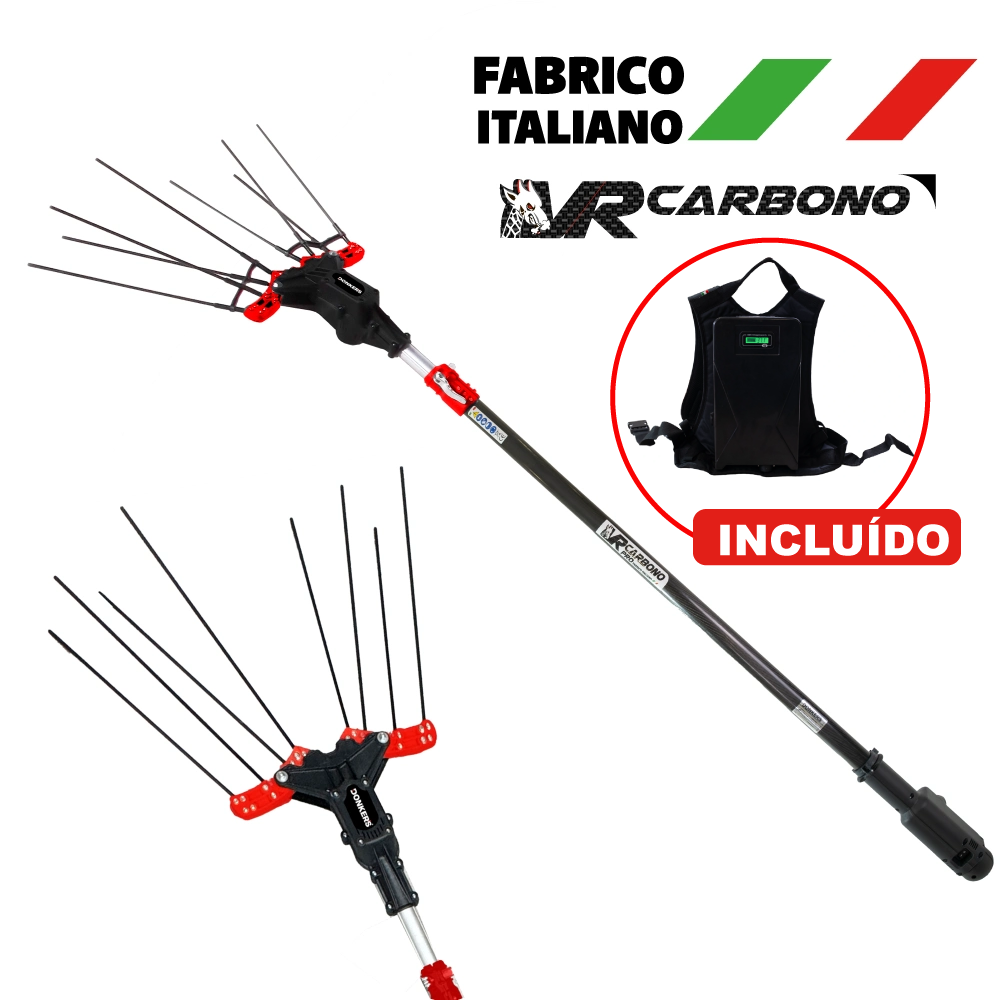 O equipamento conta com 8 varetas, com amplitude equivalente a cabeça de 10 varetas, o que assegura uma cobertura eficiente e ágil das áreas de cultivo. Isto permite varejar uma quantidade significativa de azeitonas de forma mais rápida, otimizando o processo e aumentando a produtividade da colheita.