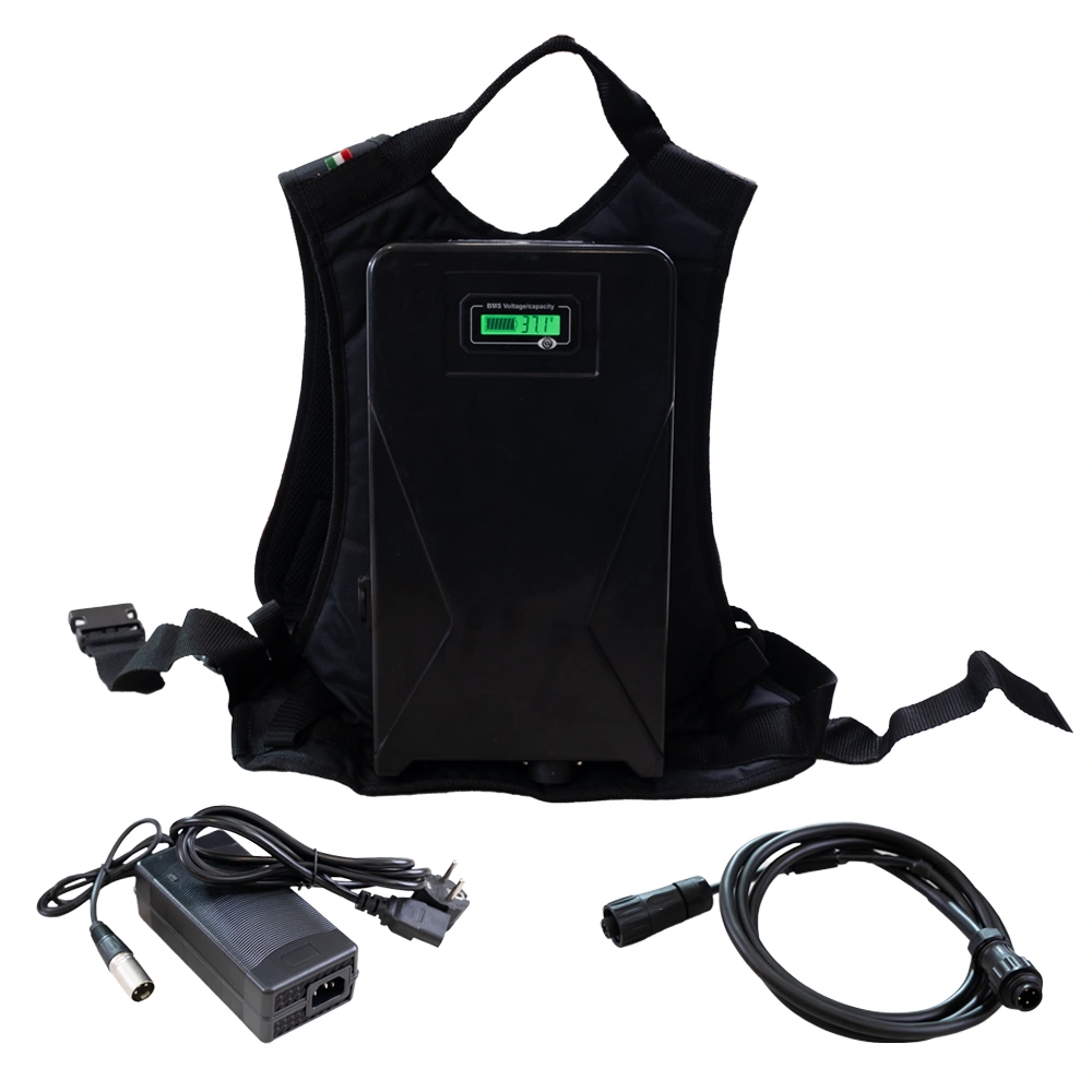 A bateria pesa apenas 3.5 kg e tem uma duração para 8 horas de trabalho.