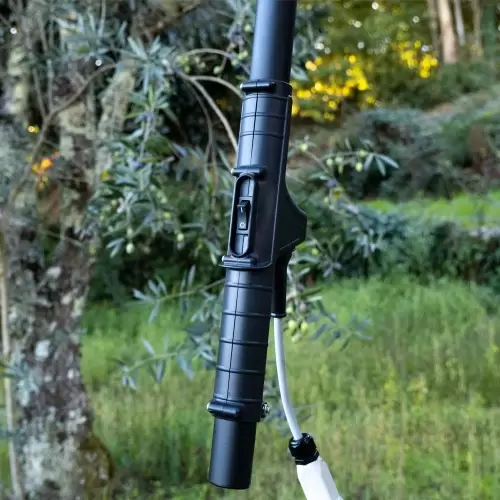 Varejador Twigo 5V5 telescópico com potente motor elétrico de 370W e sistema de varetas laterais de movimento oscilatório. Ideal para a colheita de azeitona, amêndoa, frutos secos, avelã ou café.