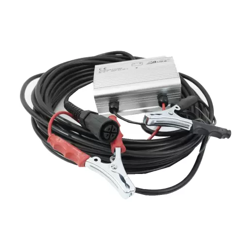 O cabo de alimentação tem extensão de 15M para liberdade de trabalho. Aconselha-se a utilização de uma bateria 12V entre 80Ah e 100Ah.