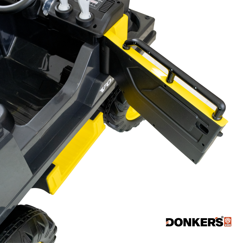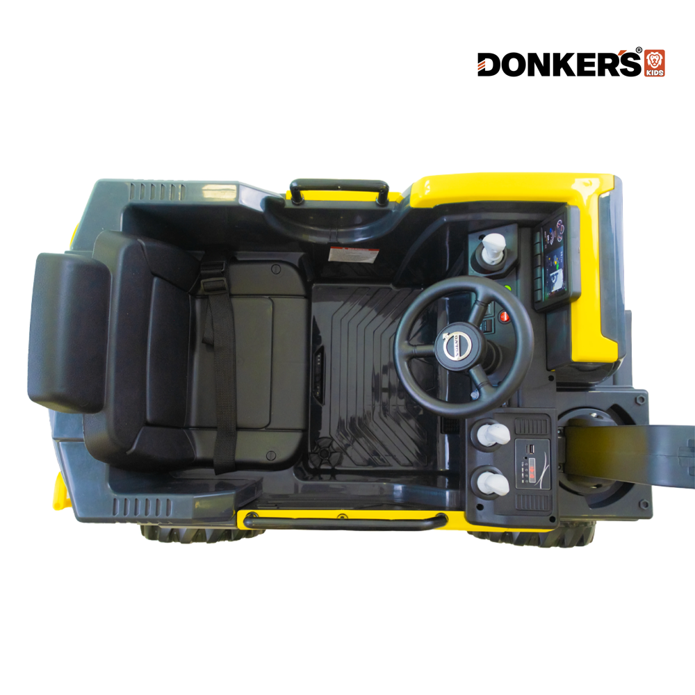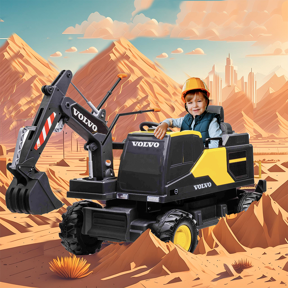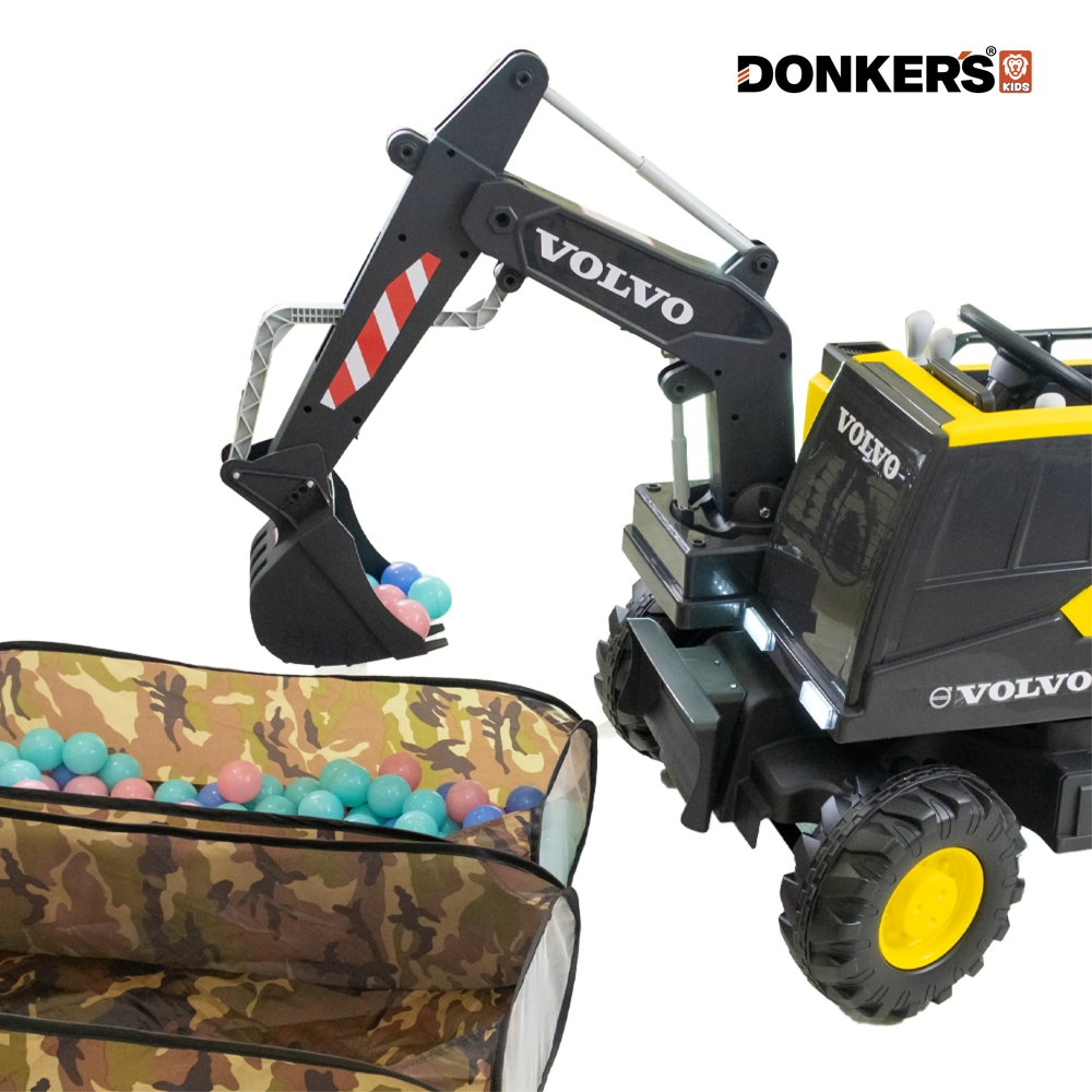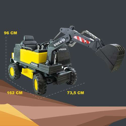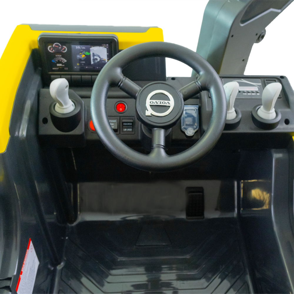 Escavadora Volvo Donker’s Kids com motor de 35W a bateria de 12V 10Ah para muitas horas de diversão sem fim.