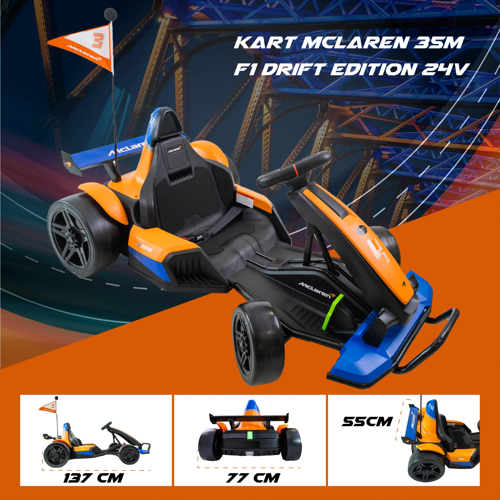 Kart MClaren 35M F1 Drift Edition 24V a bateria para crianças a partir dos 6 anos, com licença oficial pela MClaren.